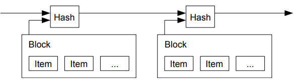 タイムスタンプサーバーは、タイムスタンプを付与する複数のアイテムからなるブロックのハッシュを取得し、例えば新聞やUsenetの投稿などにおいて、そのハッシュを広く発信することで機能する