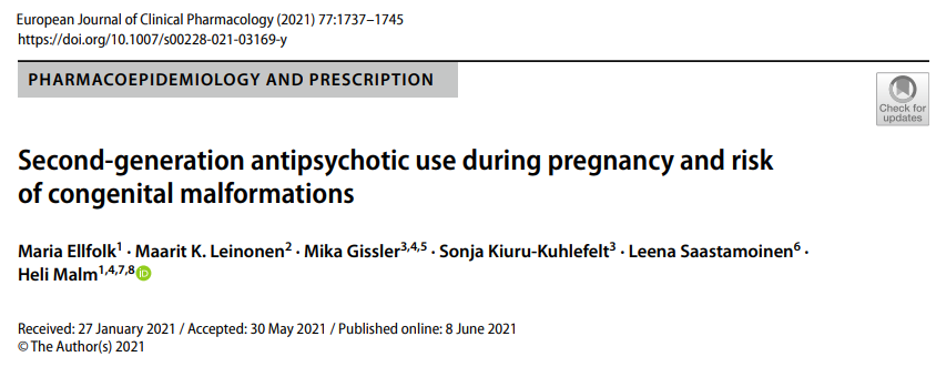 その他、リスペリドン、オランザピン、アリピプラゾール含め、第二世代抗精神病薬については、これまで明らかな催奇形性の報告はないよう。
