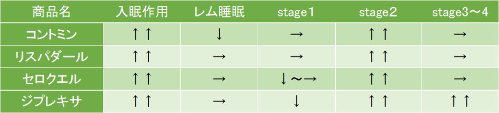 その他、一般的には睡眠薬に分類されていませんが、抗うつ薬や抗精神病薬の中には抗ヒスタミン作用により副作用として 眠気 が強いものがあり、これを目的に使用されることもあります。
